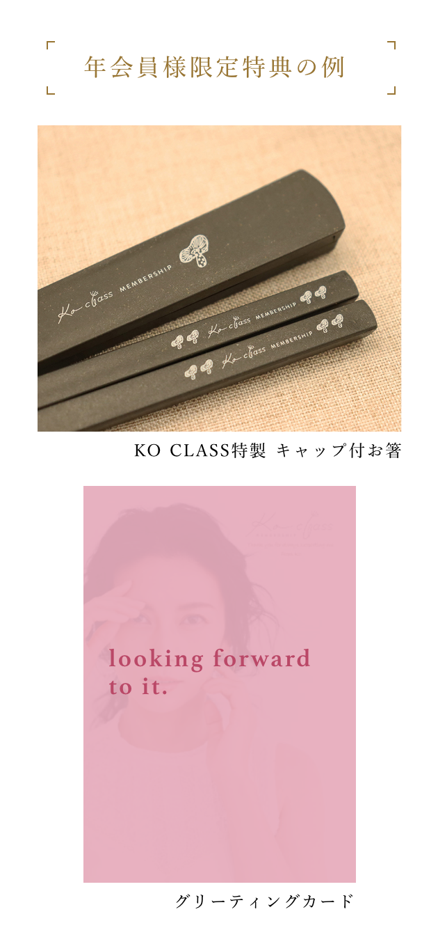 KO CLASS年会員の方は、KO CLASSオリジナルの特典をお送りいたします。